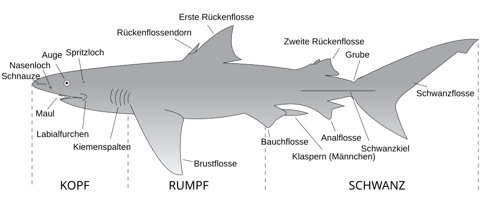 Weltweit gibt es etwa 500 verschiedene Hai-Arten - vom nur 25 Zentimeter langen Zwerghai bis zum bis zu 14 Meter großen Walhai. Haie werden in zwei große Gruppen unterteilt: Haie mit Analflosse (das ist die Flosse an der Bauchseite vor der Schwanzflosse) und solche ohne Schwanzflosse. Diese Gruppen unterteilt man noch einmal in mehrere Untergruppen: Engelshaie, Sägehaiartige, Dornhaiartige, Hexaniformes, Stierkopfhaiartige, Ammenhaiartige, Makrelenhaiartige und die Grundhaie, die mit etwa 225 Arten die größte Gruppe bilden.